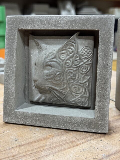 Dans nos sculptures, nous utilisons du béton que nous récupérons afin d’offrir une seconde vie à des matériaux souvent laissés de côté. Cela nous permet de travailler de manière plus éco-responsable en réduisant la production de déchets.